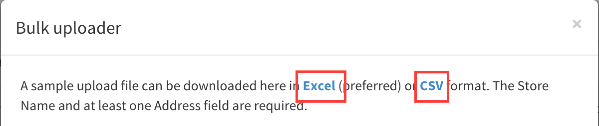 First, download the sample sales rep format by clicking on the Bulk Import button at the top of your Locations page: